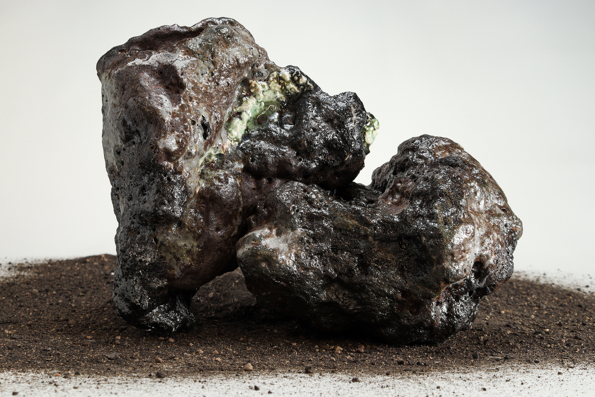 The intertwined volcanic rocks emerge at the point that liquid becomes solid, embodying the constant creative tension between solid state and movement all in one piece. They were created through extensive experimentation with material processes, in response to the raw, restless material environment of Iceland, giving sculptural form to evidence of shifting landscapes caused by natural forces.