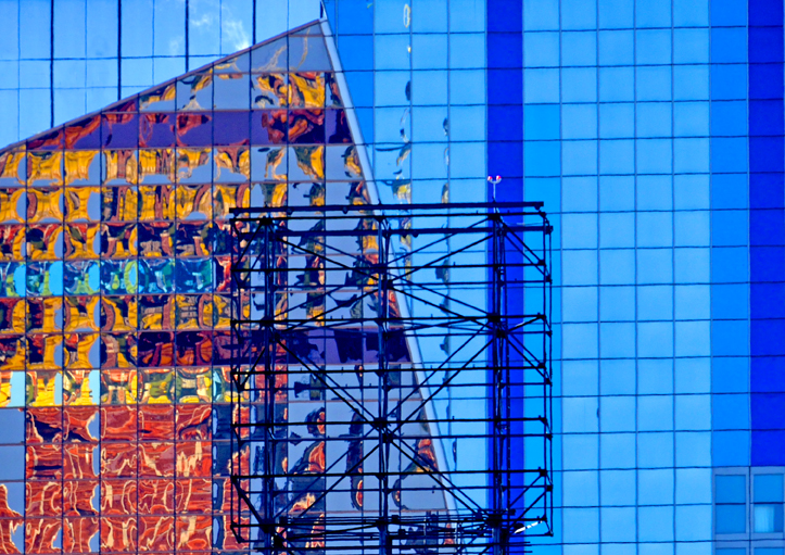 Il progetto “Vibrazioni” è una ricerca fotografica sulle immagini astratte/surrealiste prodotte dalle vetrate dei grattacieli delle nostre città. Questa opera mostra una prospettiva di NYC con vetrate di un grattacielo che producono immagini astratte.