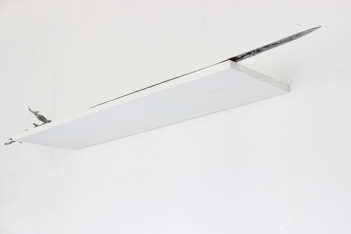 Ispirata a un mondo fantastico, Urban Legend è una spada in ferro forgiato con guardia e impugnatura in alluminio che ricorda le corna e le ossa di cervo. Per impedire una visione corretta e, in un certo senso, rimuovere i significati universali ad essa collegati - come giustizia, violenza, oggetti magici di racconti fantastici e pezzi da museo - pur accogliendoli tutti, voglio collocarla sopra uno scaffale di libri in alto. Non è nemmeno testimoniato finché non viene riconosciuto. Trovo che questo oggetto sia affascinante perché assume un significato e una dimensione completamente nuovi in base al tipo di ambiente o di situazione in cui viene collocato. Una spada è sempre piena di connotazioni diverse, quindi il messaggio dell'oggetto cambia di conseguenza. Inoltre, una domanda che la scelta installativa implica è: come è finito questo oggetto in questa posizione, lontano dalla visione immediata dello spettatore? In un certo senso, questo oggetto vuole essere scoperto, proprio come accade nei videogiochi quando si cercano oggetti speciali che aiutano il successo dei vari livelli di gioco. D'altra parte, l'idea è di nascondere questo oggetto simbolico, ma non eccessivamente, in modo che passi inosservato. In questo modo si vuole creare un parallelismo, in particolare, con il modo in cui la società si rapporta alle notizie e con la frequenza con cui certe informazioni mediatiche vengono presentate silenziosamente, facendo sì che vengano registrate dagli individui come “normali” anche quando si tratta di tragedie e crisi globali.