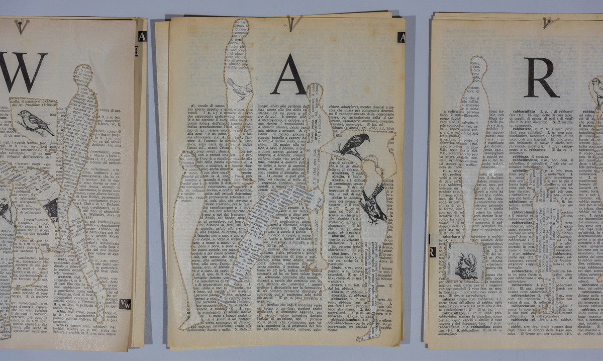 Ogni essere umano può quindi cambiare il mondo, definirne i confini dettati dalla non conoscenza della lingua, ma anche cambiarne la storia. Ogni pagina ricamata ha una storia personale, ogni pagina é un giorno della nostra vita, in queste, le piccole figure ricamate si muovono liberamente, portando con loro nuove esperienze, costruiscono nuove definizioni, stravolgono il concetto legato alle cose, mischiano il mondo, sono uccelli ma anche fiori, si fanno verbo e possono modificare quello che dovrebbe accadere, organizzano un messaggio per l’umanità.