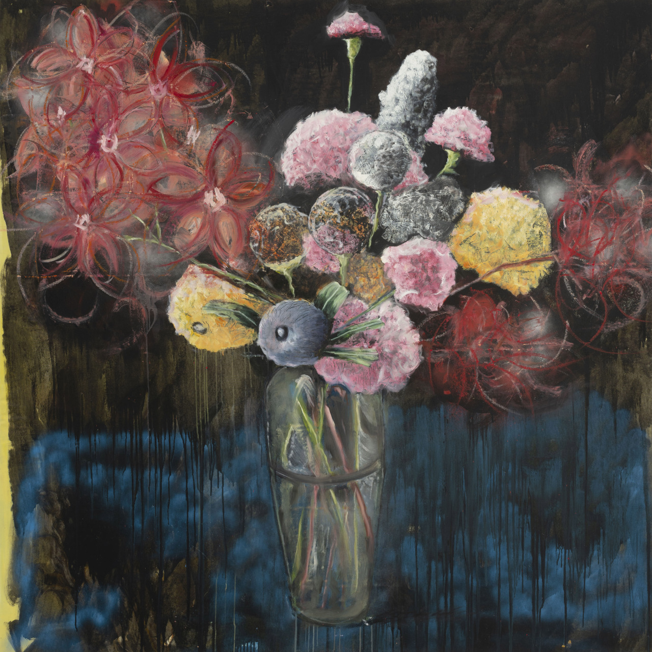 È quasi una comprensione del vivere e dell’esistenza. Per lui dipingere significa spingere oltre le nozioni di rappresentazione o astrazione e sintonizzare sentimenti ed emozioni. Il suo lavoro desidera tracciare i modi in cui osserva il mondo. Attraverso le sue pennellate turbolente, cerca un significato interiore nel quotidiano, creando un ritratto complesso e intrecciato della natura umana. Il supporto su cui dipinge varia a seconda dell’opera, solitamente lavora su tela con olio e acrilico, spray e aerografo ma anche colori subcristallini su ceramica, materiale a lui caro che gli permette di collaborare con un maestro artigiano molto stimato. In generale, i soggetti sono basati sulla realtà che lo circonda, in particolare la routine ordinaria nuda e cruda, ma al tempo stesso è affascinato dalla rappresentazione di nature morte, soprattutto fiori. Ora protagonisti di Flowers and Something. Conquistato dai dipinti di natura morta realizzati da grandi artisti come De Pisis e Matisse, Zhang Enli, Jennifer Packer, Cornel Brudascu e Tursic&Mille, è il concetto di tempo che scorre che lo ha invogliato ad affrontare questo tema. La Rocca grazie al desiderio di rappresentare nature morte – fiori – sviluppa un metodo in cui, come un rito, ogni mattina alle 6, nel suo studio al buio, aiutato dalla luce di un proiettore – che lo agevola con linee guida, proporzioni e chiaroscuro – dipinge mazzi e vasi. Nessun bozzetto, nessun gesto o intezione precedono il lavoro mattutino, l’artista decide questa condizione come fatto imprevedibile. Il concetto espresso è quello dell’inaspettato, della sorpresa, la condizione che più si avvicina alla vita dell’essere umano. Una quotidianità fatta di incognite e di mistero che generano desiderio di sapere, di conoscenza di se e dell’altro, inteso come tutto ciò che ci circonda.
