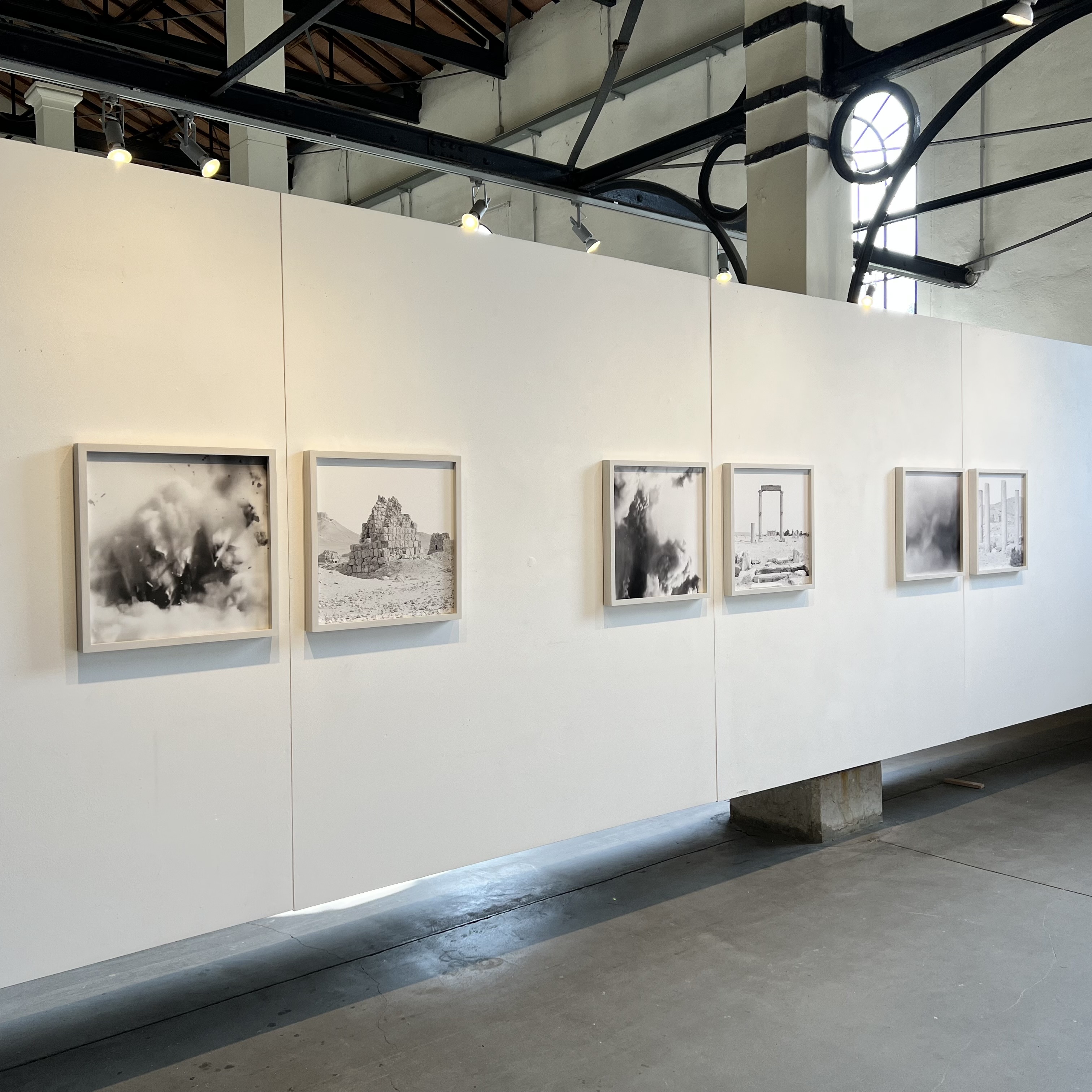 Da un lato, ci sono immagini classiche di fotografia archeologica in cui si vede l’imponenza delle strutture architettoniche dell’antica città di Palmira. Dall’altro, invece, immagini che sembrano, volutamente, delle nuvole, nembi leggeri, ma che, in realtà, sono colonne di fumo che si alzano dopo l’esplosione di siti archeologici o monumenti che ISIS prende di mira in quanto simboli di una cultura pagana o lontana dai dettami della loro filosofia.
