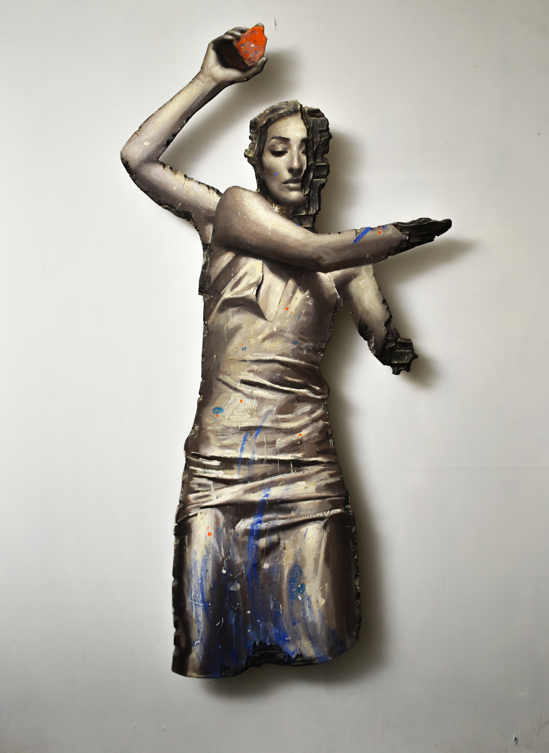 C’è un punto ed un momento in cui le cose cedono, si disgregano, collassano. Può essere un lento erodere, come ci insegnano le montagne e i greti dei fiumi che ne scavano lentamente i fianchi di roccia, o può essere il risultato di un cedimento improvviso, di una collisione istantanea. Che siano frutto di battaglie fisiche o della scavare del tempo che corrode, le rovine lasciano trapelare qualcosa della loro provenienza. La storia delle immagini non è che un riannodare il filo, aggiungere anelli ad una catena che si perde nel tempo e che lotta contro il tempo. Gesti che ritornano, sguardi che persistono, archetipi che riaffiorano e ci indicano una strada. Se il tempo presente, come sosteneva Marc Auge’, non ha più il tempo di produrre significative rovine, ma solo macerie velocemente sostituibili, allora invertire la rotta significa anche partire da ciò che è scarto, residuo, frammento. Gli “studi per una scena di battaglia” rimandano a tutto questo. Frammenti di figure che scagliano pietre, tentano di costruire rifugi, mostrano la schiena cercando la fuga. La battaglia è contro il tempo, contro le cose che terminano. Scagliare una pietra e’ un gesto di sfida. Cosi, una pietra che viaggia nell’aria è un principio di rivoluzione, che sia uno specchio del moto di rivoluzione terrestre e planetaria oppure un gesto di rivolta. Pare strano che la stessa parola “rivoluzione” indichi dall’etimo latino un rivolgimento, un ritorno al punto di origine e allo stesso tempo significhi anche un cambiamento radicale e rapido dell’ordinamento costituito. Le immagini, come sassi lanciati nella storia, viaggiano nel tempo per frammenti, enigmi e cose non dette e portano tracce che si sedimentano nella memoria.
