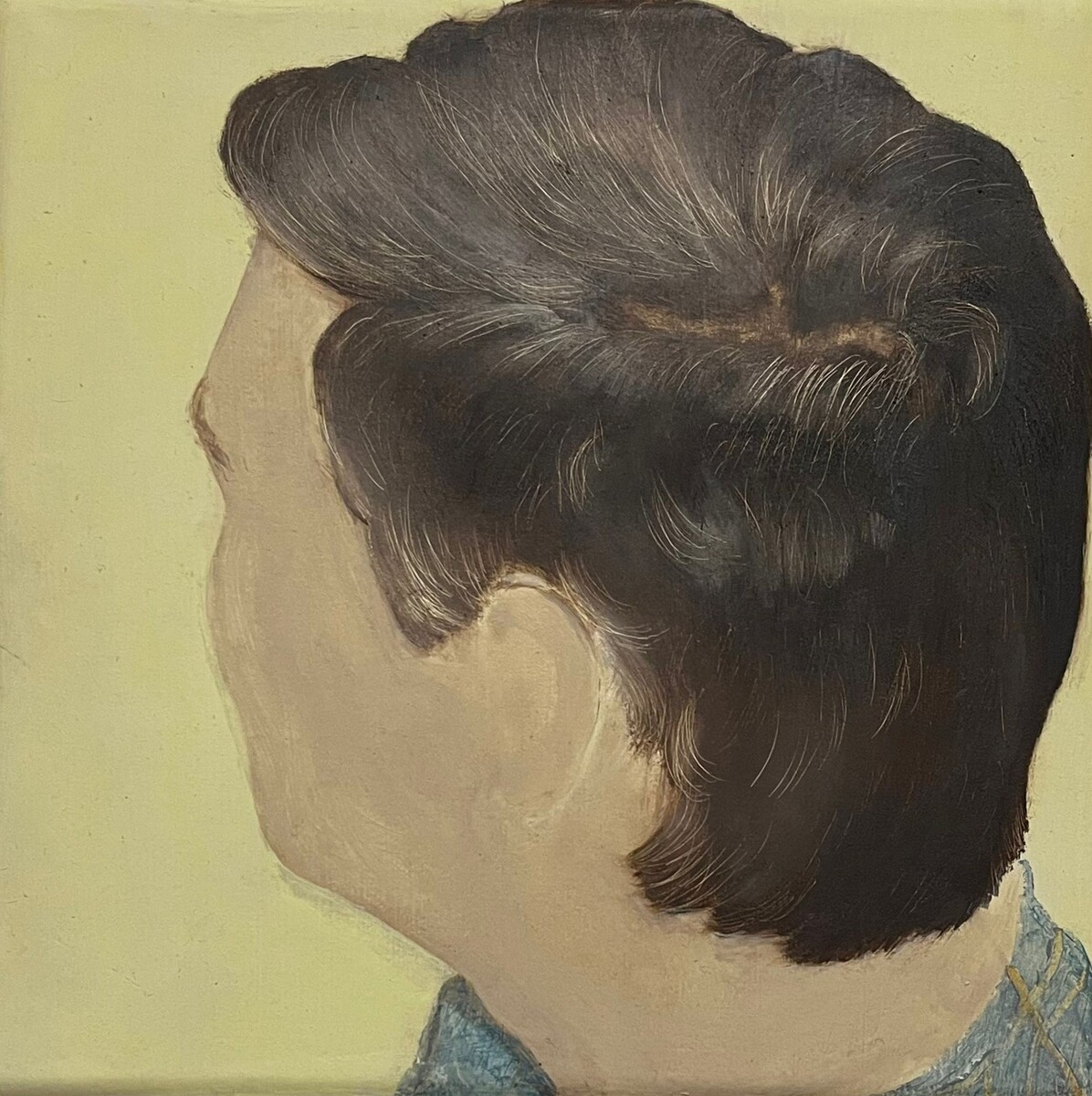 Il partner sprofonda in un soffice piumone completamente spogliato dai propri abiti immerso in un’atmosfera calma. Nella mia poetica recente emerge il tema dell’intimità quotidiana come se guardassi dallo spioncino della porta di casa, azioni o dettagli ravvicinati del marito si tramutano in celebrazioni dell’ordinarietà domestica.