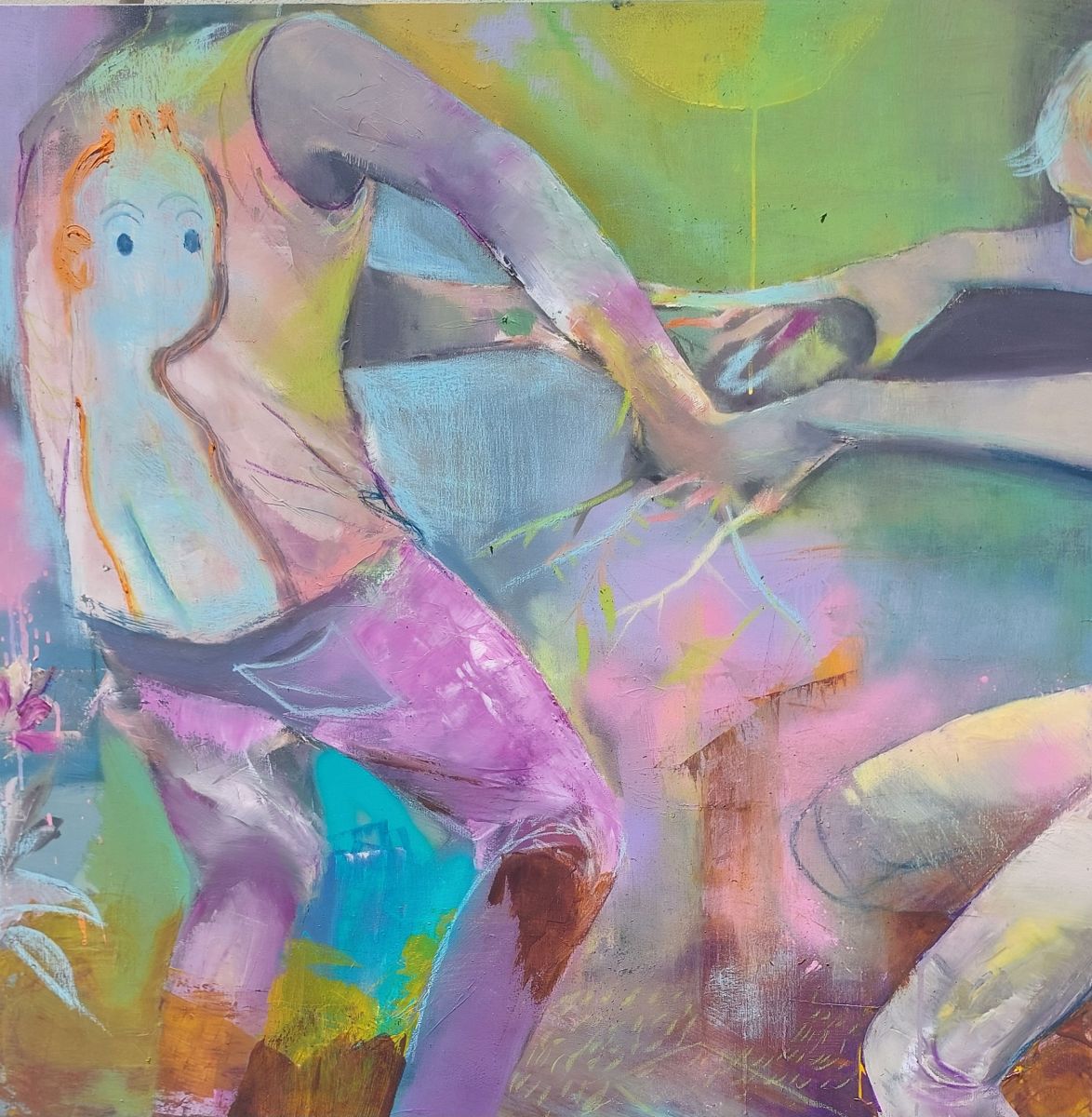 Insieme olio e spray acrilico, tela 100 x 100 cm