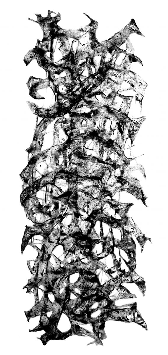 Il testo scelto per innescare il processo creativo è il racconto della cacciata di Adamo ed Eva dall’Eden (Genesi III, 21). Alla prima trascrizione in ebraico antico segue una ripetizione progressiva che produce un’opacità (Blur) grafica e visiva: i caratteri e il senso originario si dissolvono.