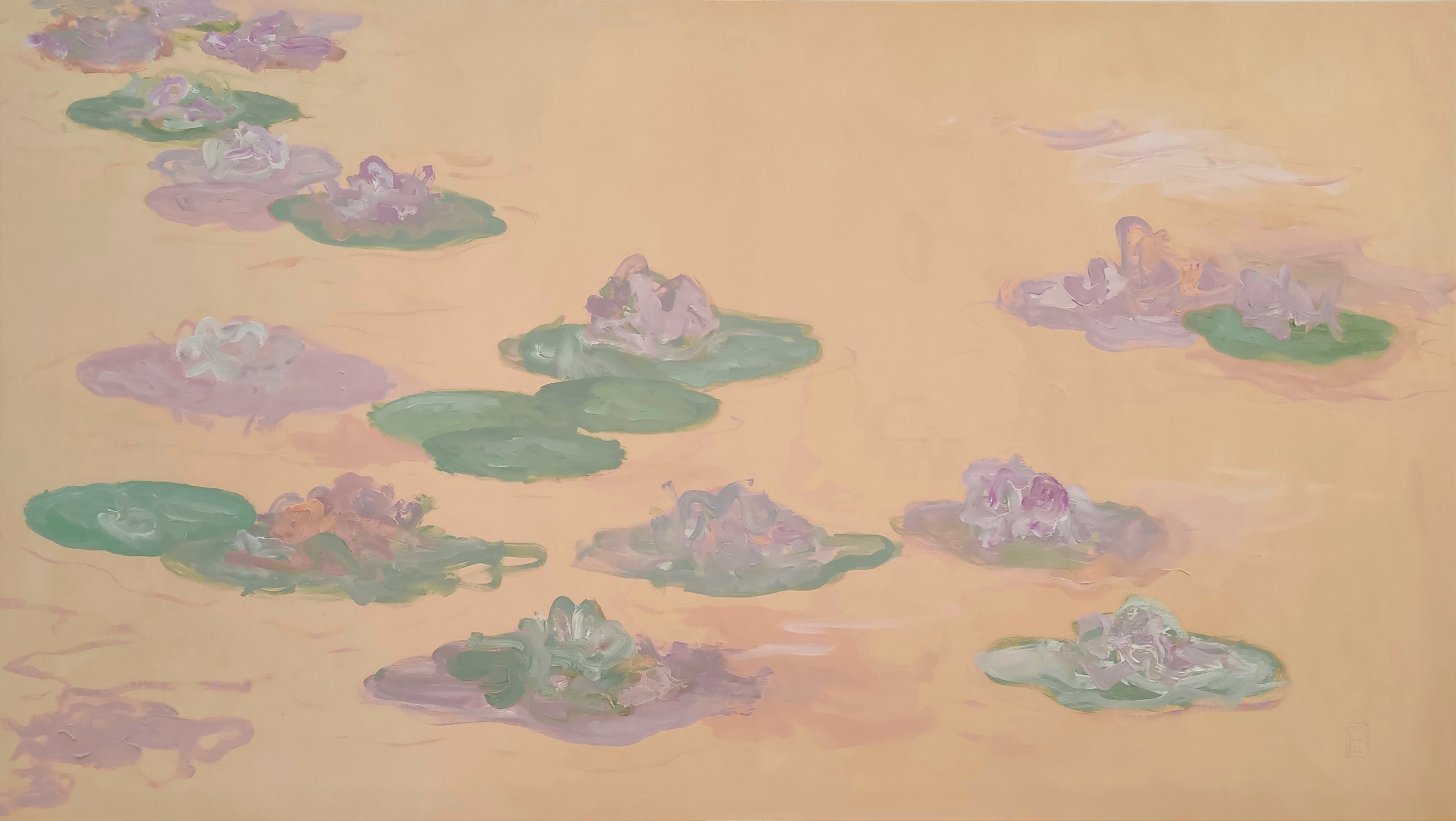 Lo sfondo presenta colori tenui, con una ricerca cromatica che evoca il momento del tramonto. Prevosto offre una costruzione spaziale prospettica: le ninfee sembrano delle navicelle aliene. I fiori risultano infatti senza controllo, elementi di materia che brulica e si muove in maniera disorganizzata e libera.
