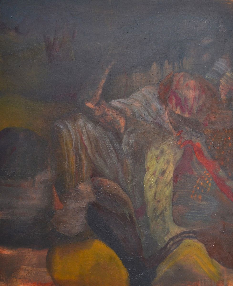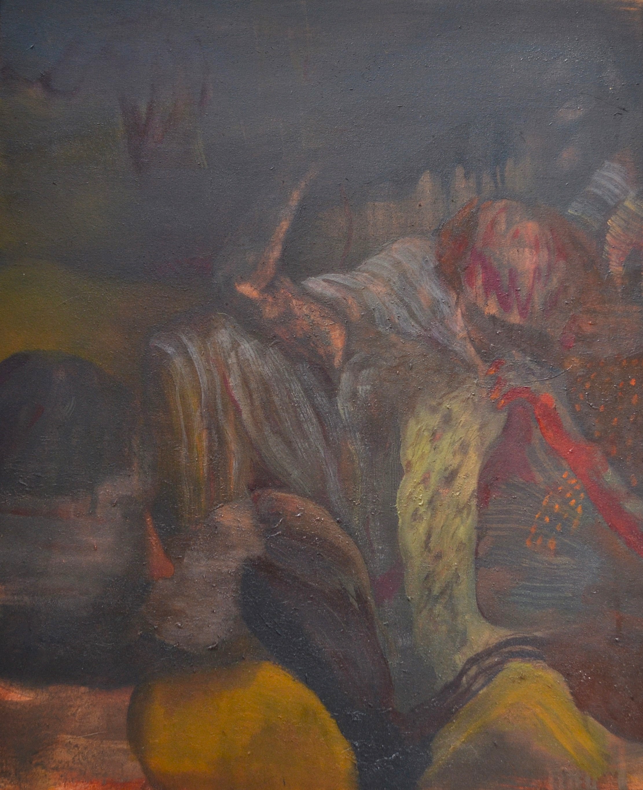 All’interno di toni scuri e grigi, le figure non sono mai completamente definite: lo spettatore è chiamato a cercarle, a interpretarle.