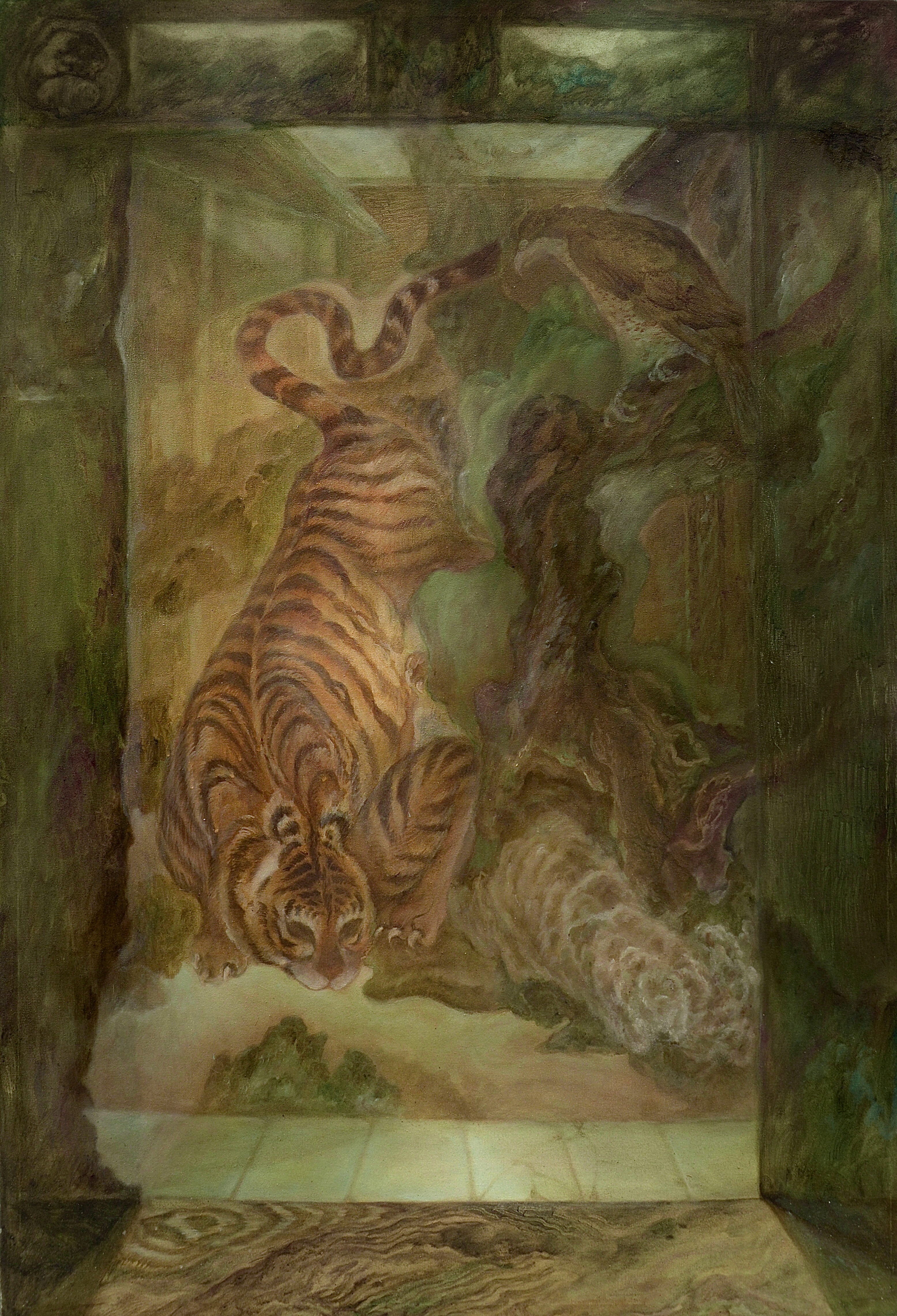 My inspiration comes from the poetry a dying tiger moaned for drink British poet Emily Dickinson,In Buddhism, the ”Dead tiger” symbolizes the peril of abusing power and prioritizing immoral choices, ultimately resulting in disastrous consequences. This motif serves as a reminder of the importance of ethical behavior and mindfulness in decision-making.My work is the fruit of a unified and complex thought that draws the rhythms and the writing of the legendary myth or the traditional fable towards the disenchantment of forensic psychology and the abstruse objectivity of Western fantasy literature. My scrupulous curiosity sometimes extends as far as the foundations of criminology, horror movies, advertising spots – strange and colorful, family anecdotes, and the presentation of food in the kitchen.