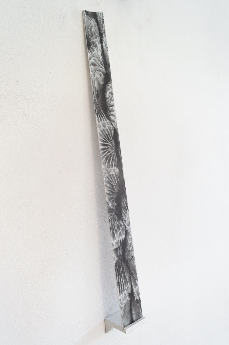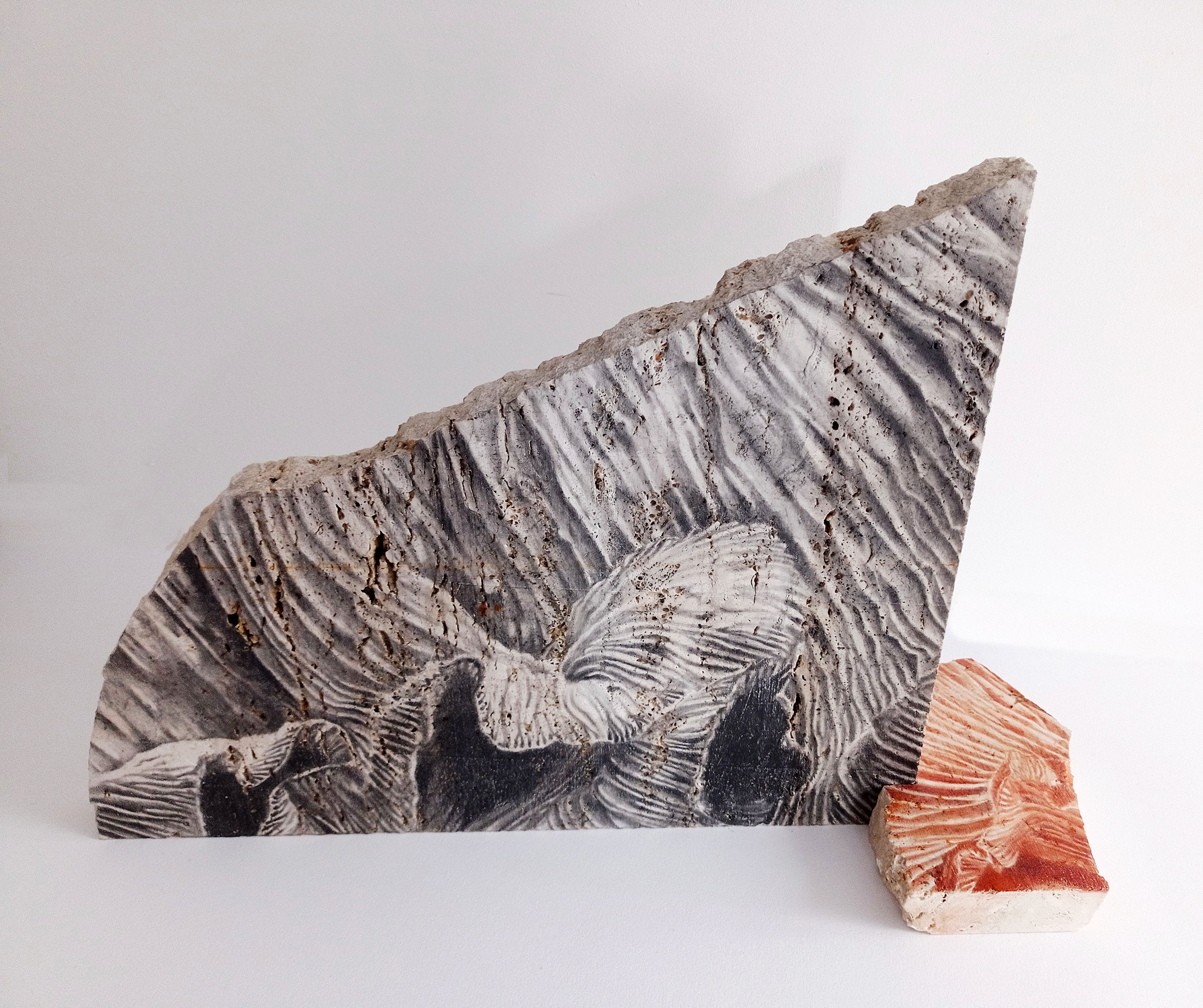 Negli ultimi anni la mia ricerca artistica si è concentrata in particolare modo sul disegno con l’utilizzo di diversi strumenti come la grafite, i pastelli e le matite colorate. Ho iniziato a lavorare prima su fogli di carta di piccole dimensioni, successivamente espandendo il segno su grandi formati fino a sperimentare superfici come le pietre di marmo e travertino. I soggetti, provenienti dal mondo naturale sono ingranditi, trasfigurati nel tentativo di offrire punti di vista inconsueti. L’osservatore è costretto a sfogliare, nell’atlante della propria memoria, immagini che lo aiutino a riconoscere ciò che sta guardando per poterlo comprendere. È un processo poetico, meditativo e di dialogo che cerco di instaurare, attraverso il mio lavoro, con il pubblico. Un’esperienza tra echi e rimandi, inesauribili segreti, che abitano nei fossili di memoria.
