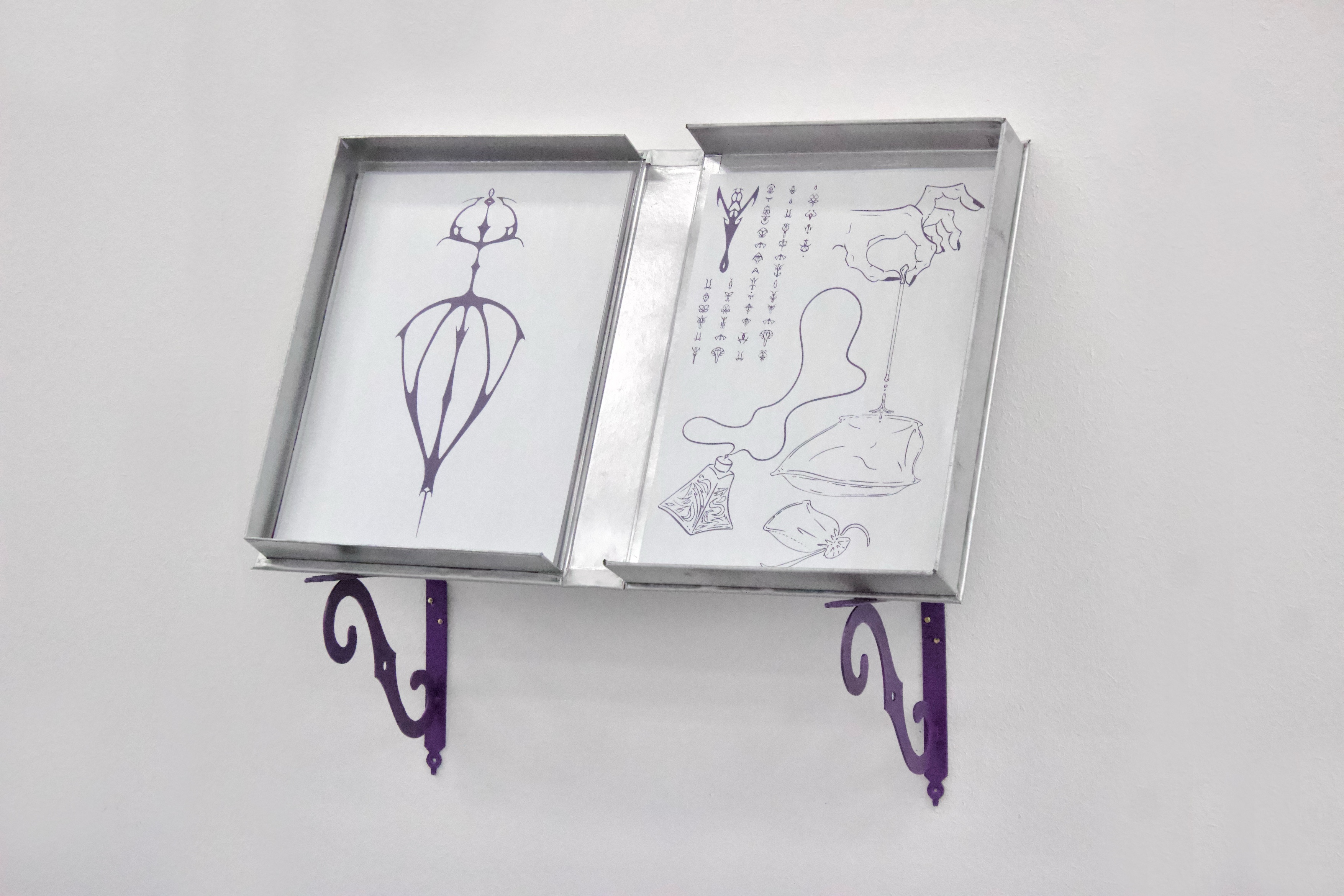 Me and my alter ego Zosia Metel, a witch who inhabits my dream world, use a combination of visual and sound language to bring life to an obelisk that takes on the appearance of a contemporary bestiary.