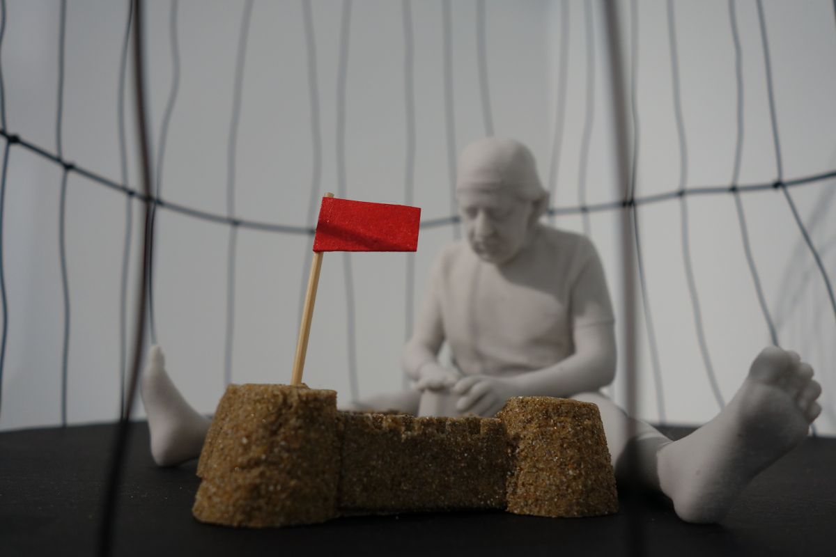istallazione - tecnica mista, vetro, resina e polvere minerale, legno, cartone, metallo, plastica